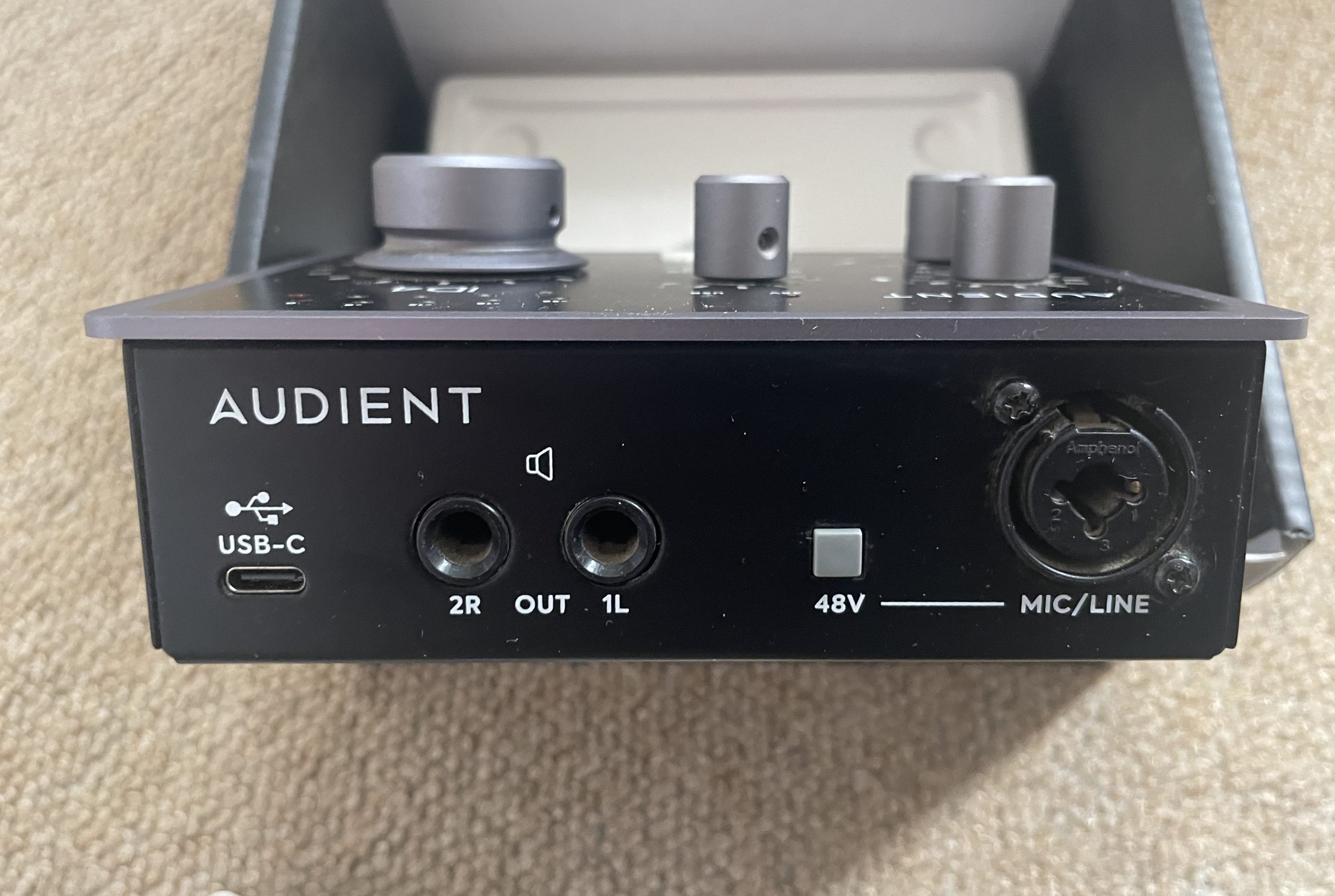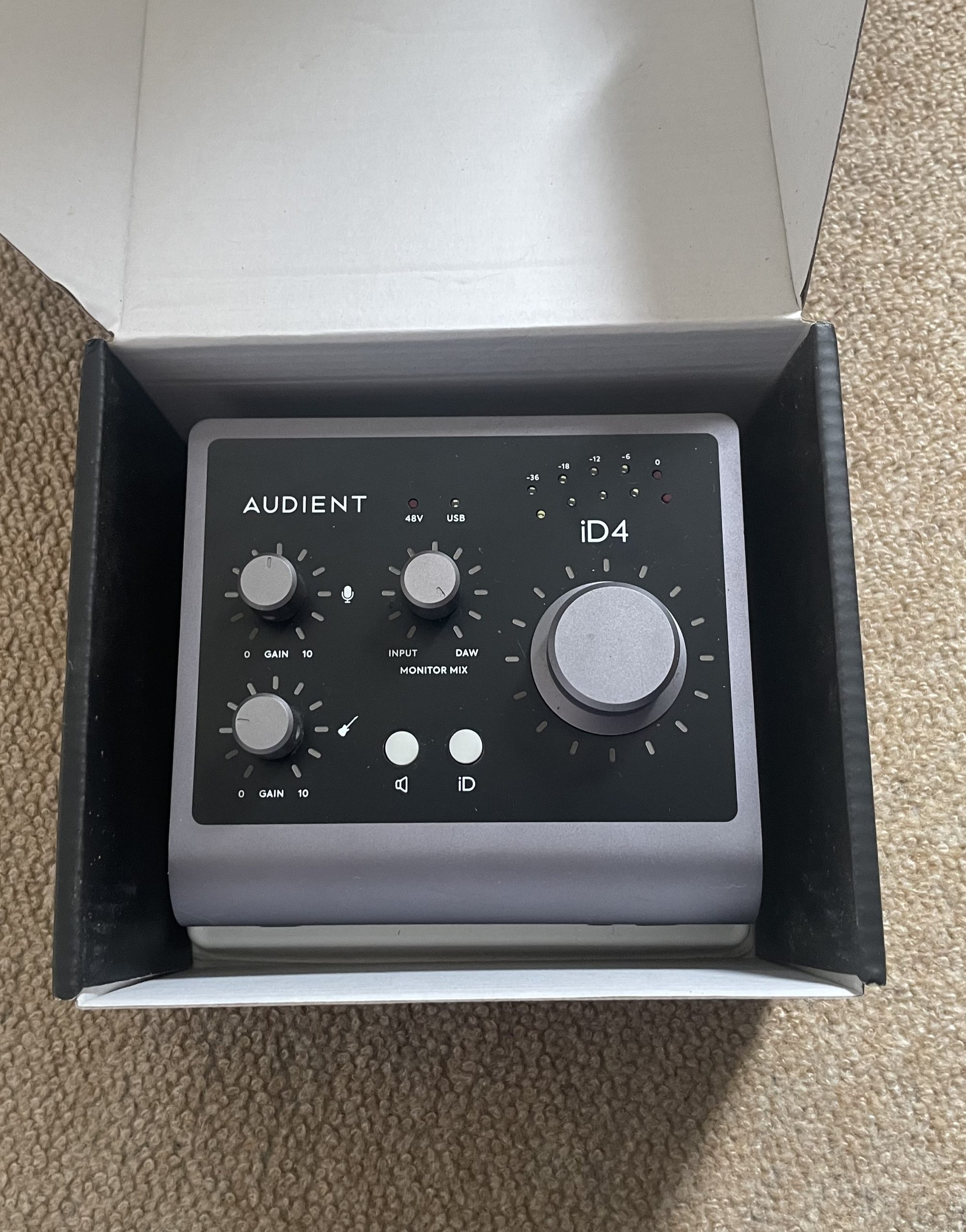 Audient Audio Interface iD4 MKII, Class A Console Microphone Preamp (High Speed USB-C, Monitor Mix and Monitor Panning Function, 2 Headphone Outputs, Mac/PC/iOS Compatible),   In great condition Comes with the box Designed to take your recordings to the next level in every way, the iD4MKII delivers professional audio performance…Read More