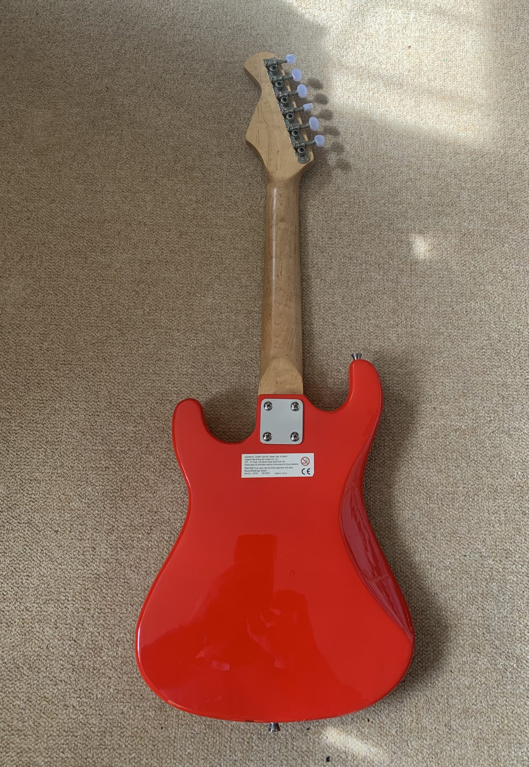 Find your sound (and a love of music) with these bright red ST-style hardwood electric guitars