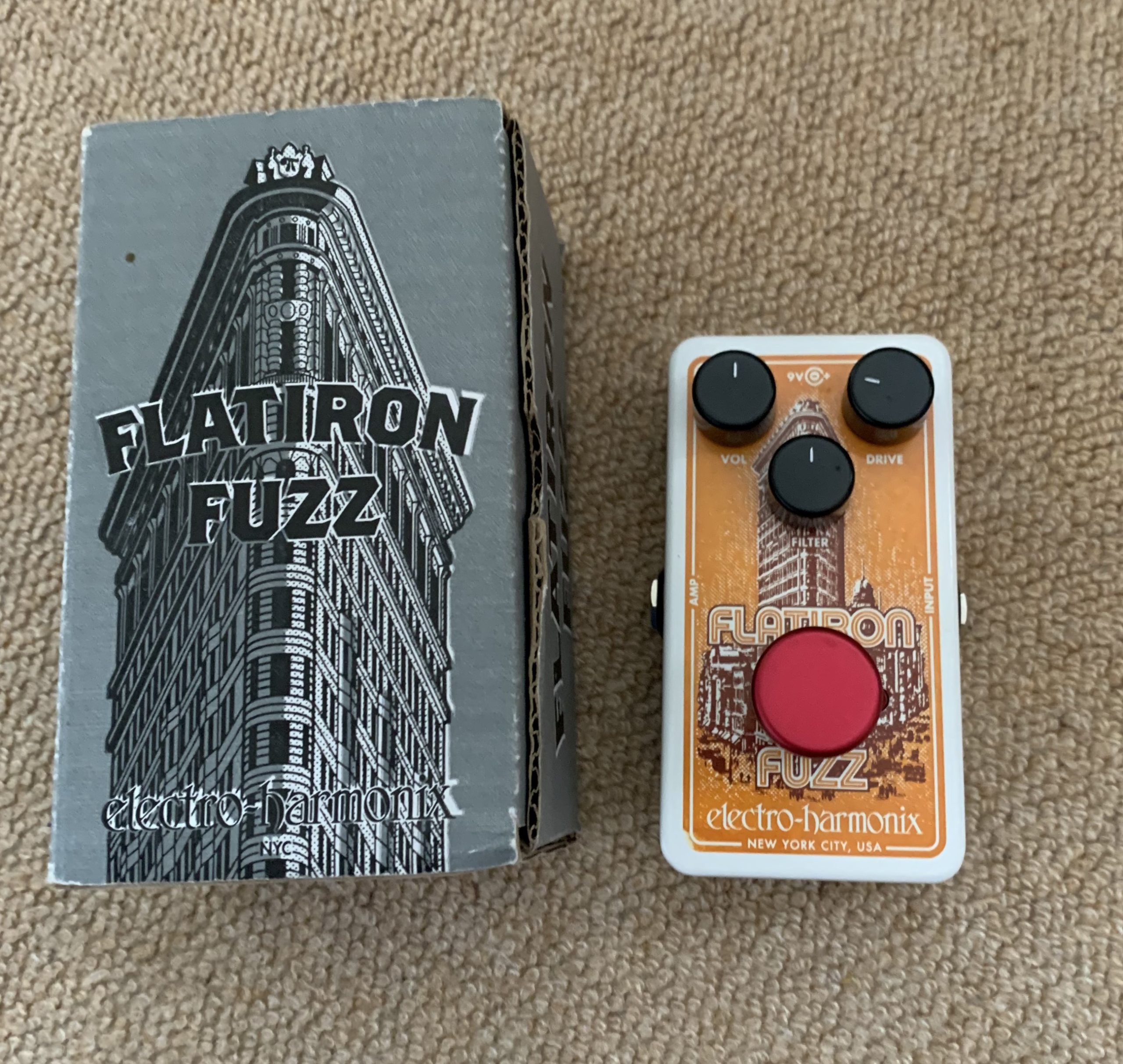 Electro-Harmonix trivia: The Flatiron Fuzz is named after the historic Flatiron Building in New York City. It’s an iconic landmark located just down the block from EHX headquarters in the 1970s and it’s the building pictured on the pedal.