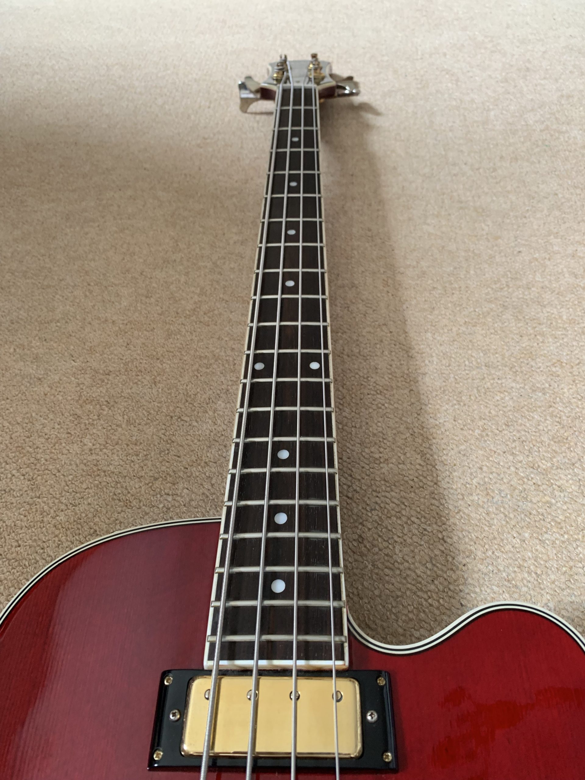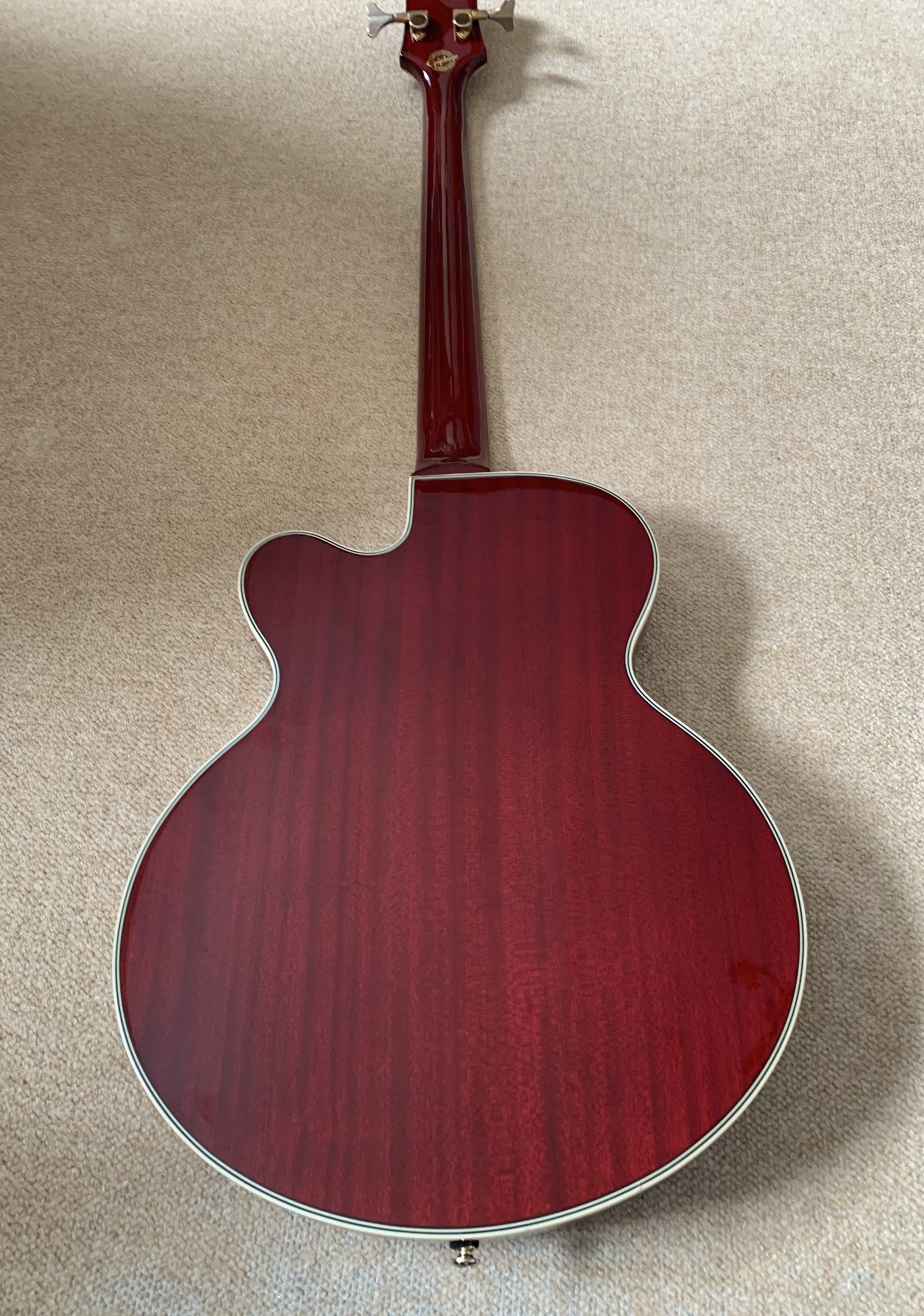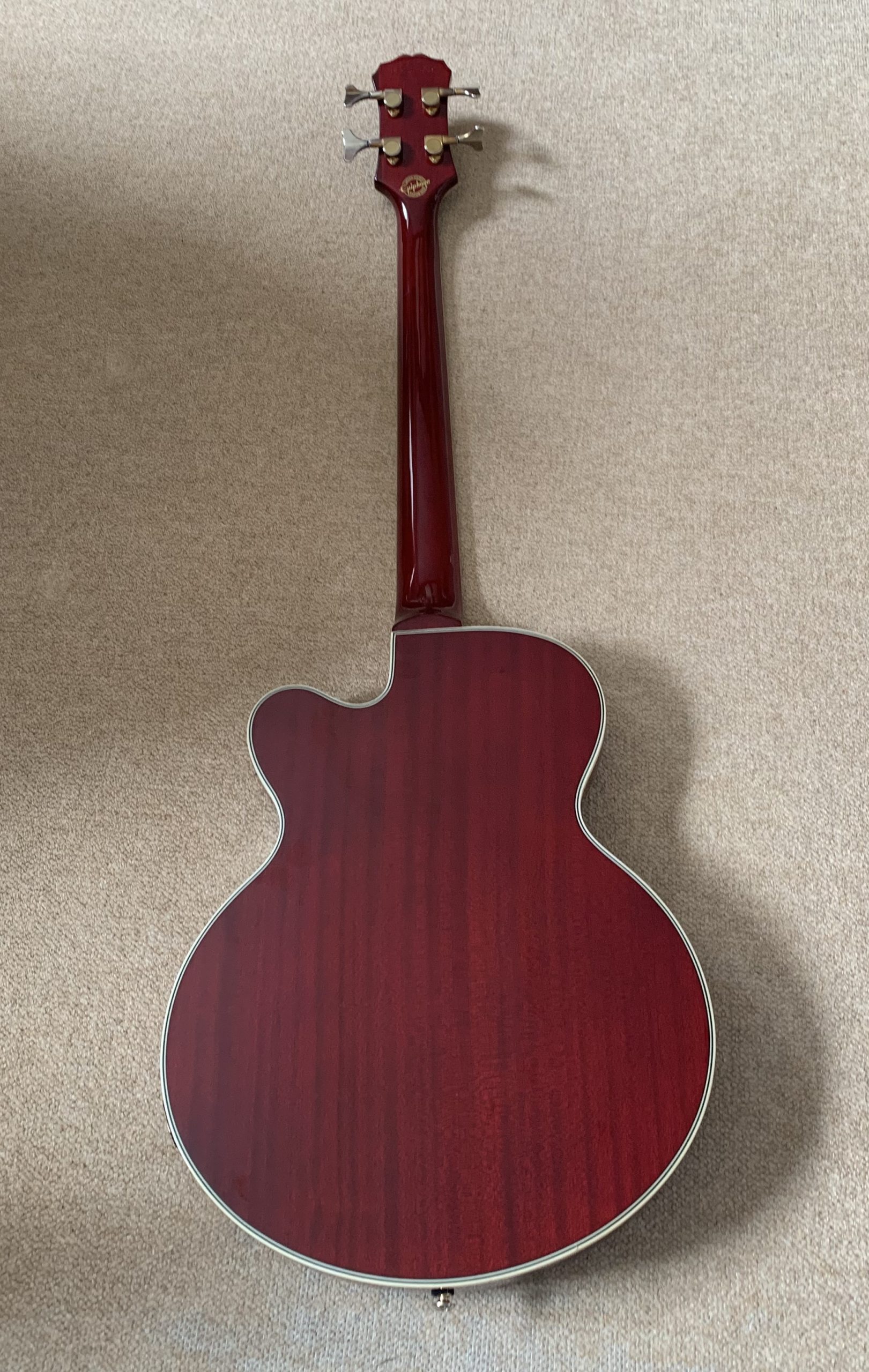 Epiphone Custom Shop Allen Woody Rumblekat Bass, Wine Red 2016 In mint condition Comes with the gig bag The Epiphone Allen Woody Rumblekat Bass is a signature model, designed by the late, great Allen Woody before his death in 1999. Both the neck and body have been crafted from mahogany.…Read More