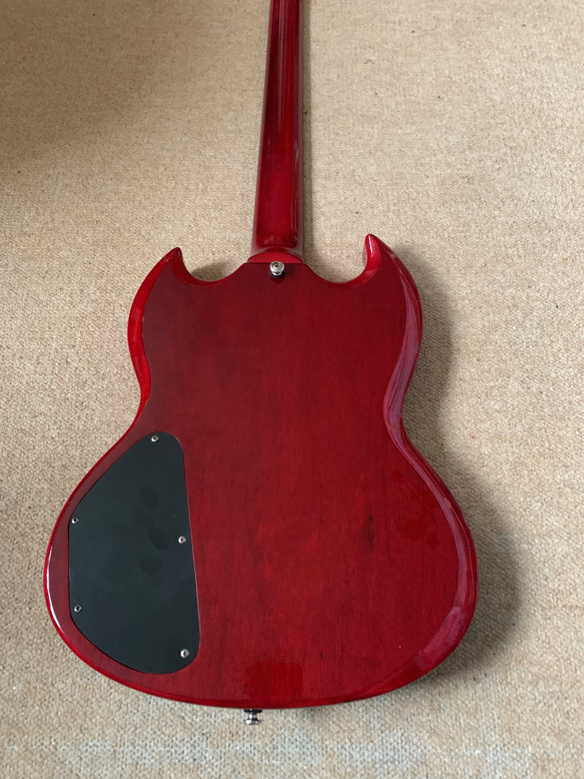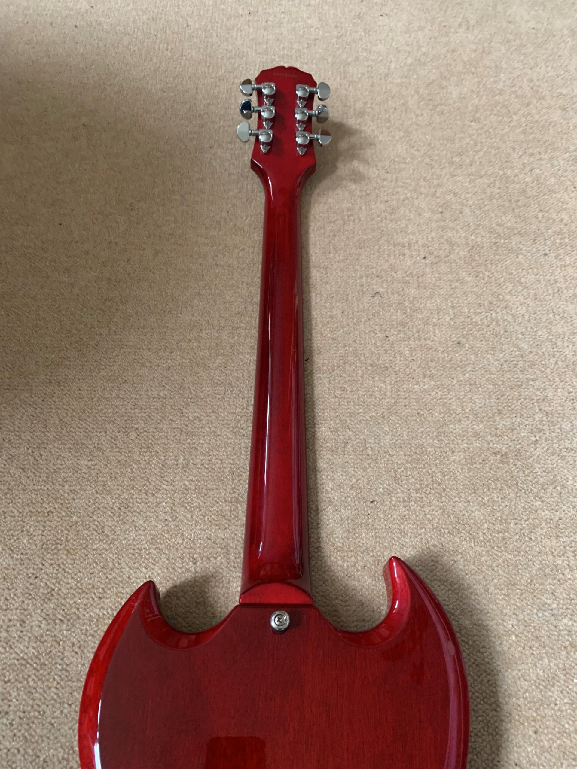 Epiphone SG Heritage Cherry 2003 Unsung Korea In great condition 2 dents on the front see photo and some small player marks Plays fantastic Comes with the gigbag Gibson truss rod cover This Epiphone guitar was made in 2003 during December Unsung factory in KoreaRead More