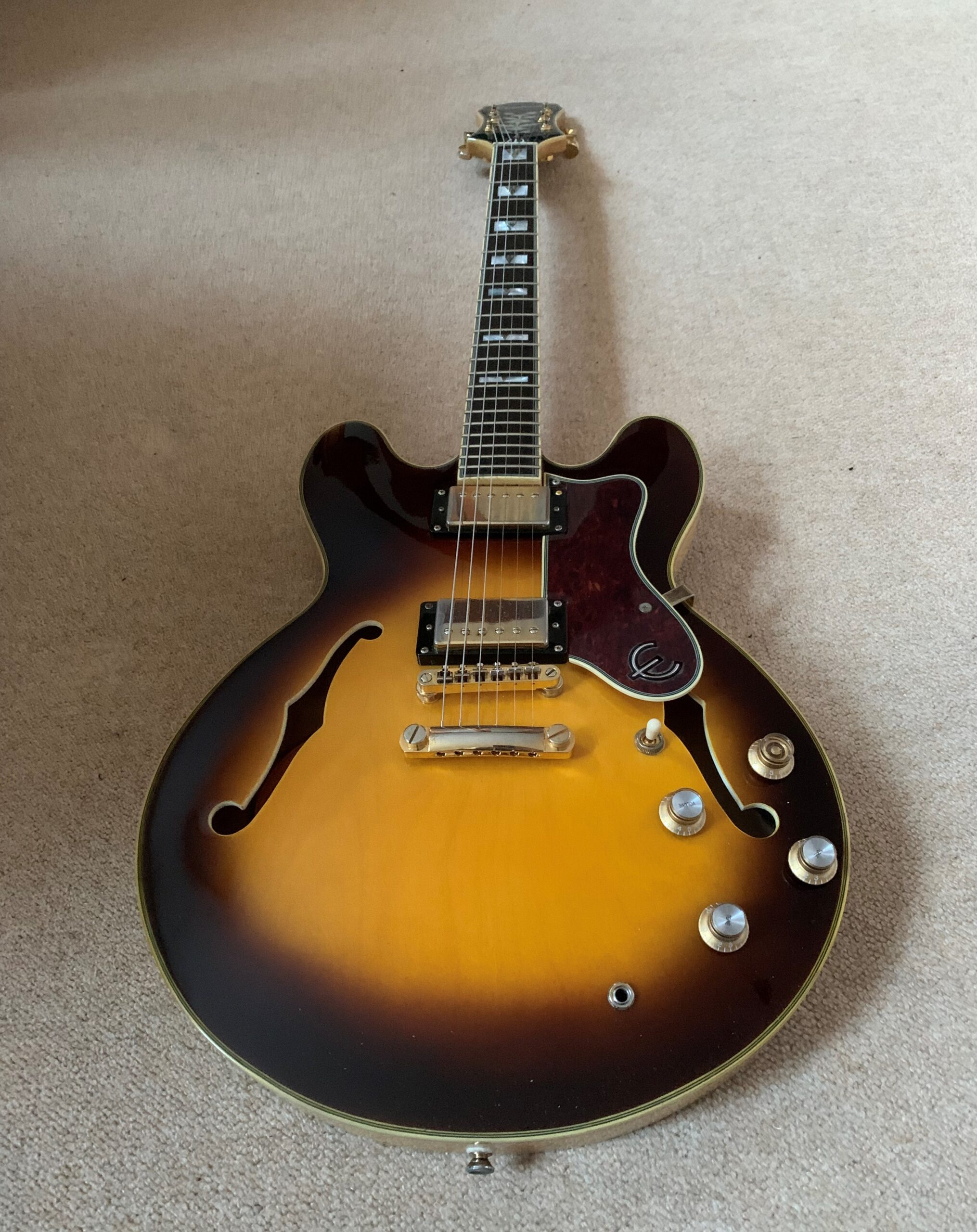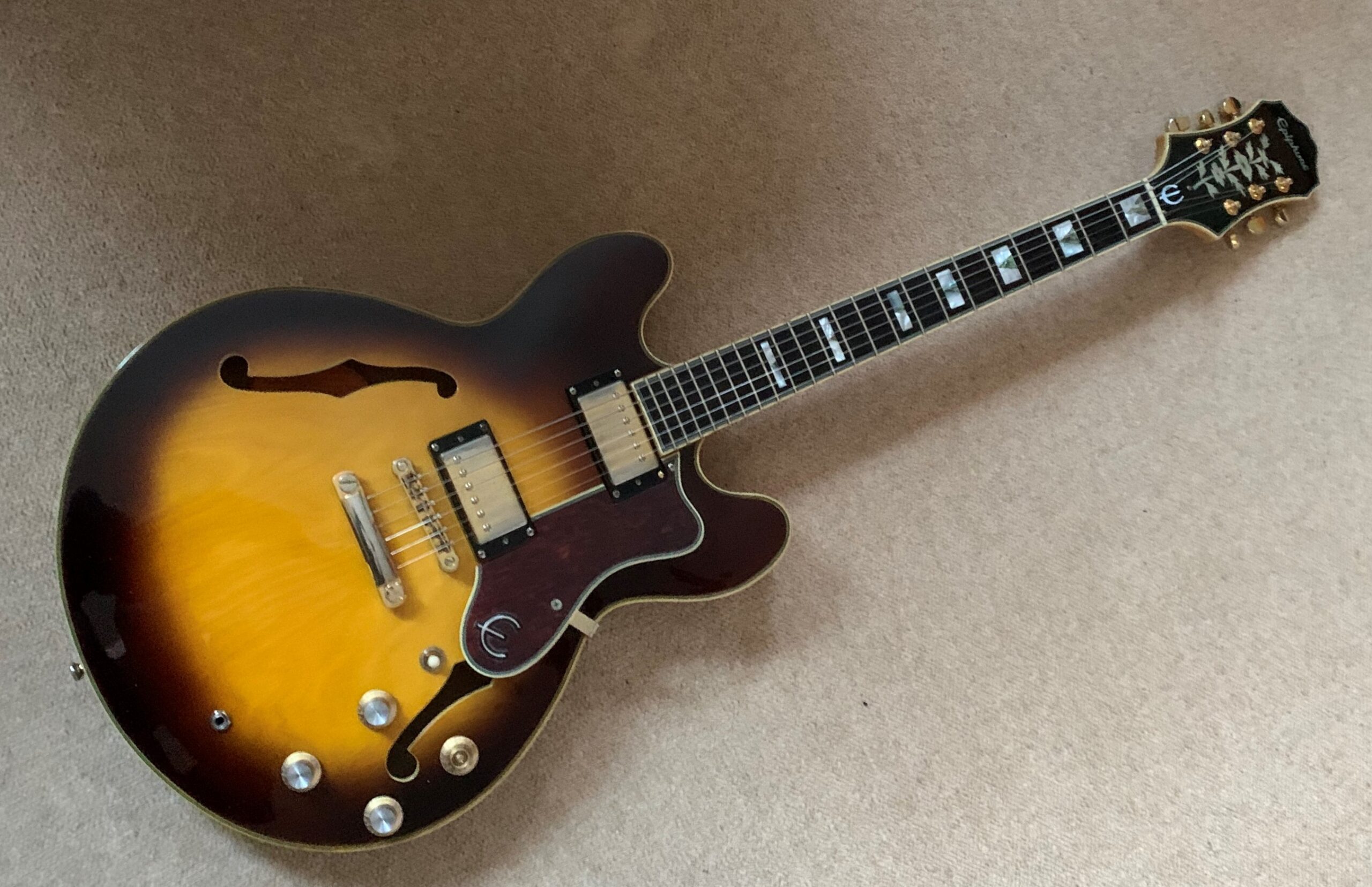 Hailed by blues legend John Lee Hooker as ‘an out-did 335’, the Sheraton has been renowned for decades for its combination of superior tone and beautiful pearloid and abalone inlays. Originally released in 1959, the inspiration for the ‘thin-line’ or ES series has its roots in Les Paul’s first solidbody guitar, ‘The Log’, that Les built in Epiphone’s factory in Manhattan in 1940.