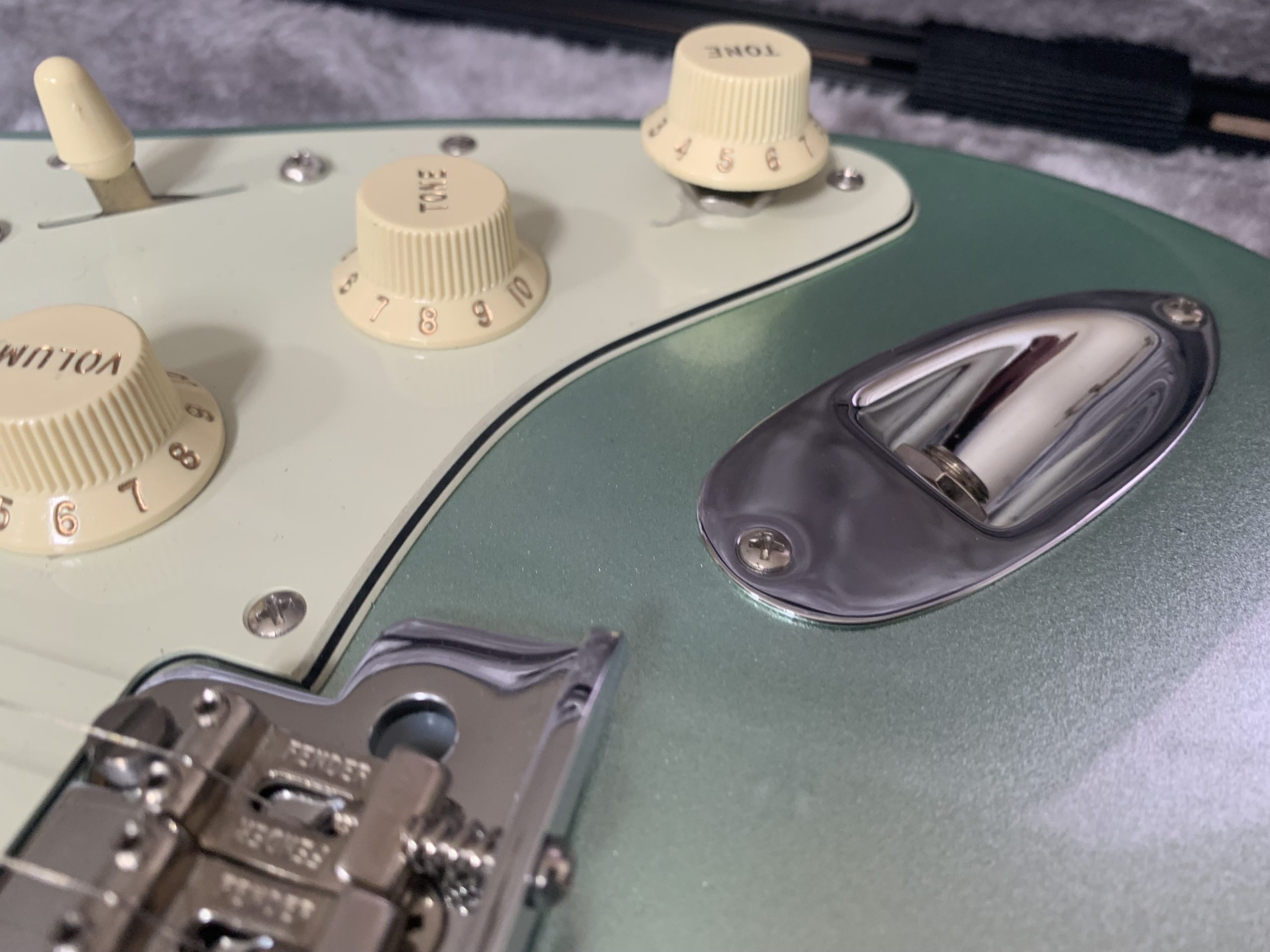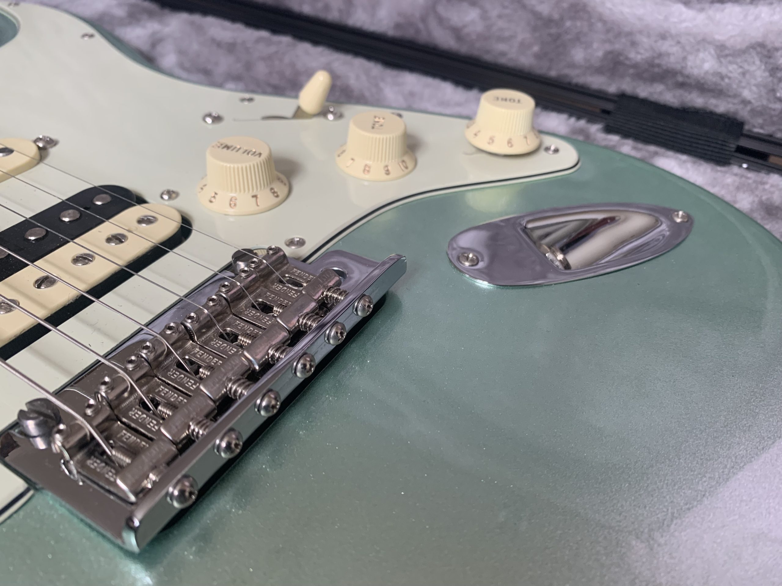 • Bridge: 2-Point Synchronized Tremolo with Bent Steel Saddles, Pop-In Tremolo Arm and Cold-Rolled Steel Block