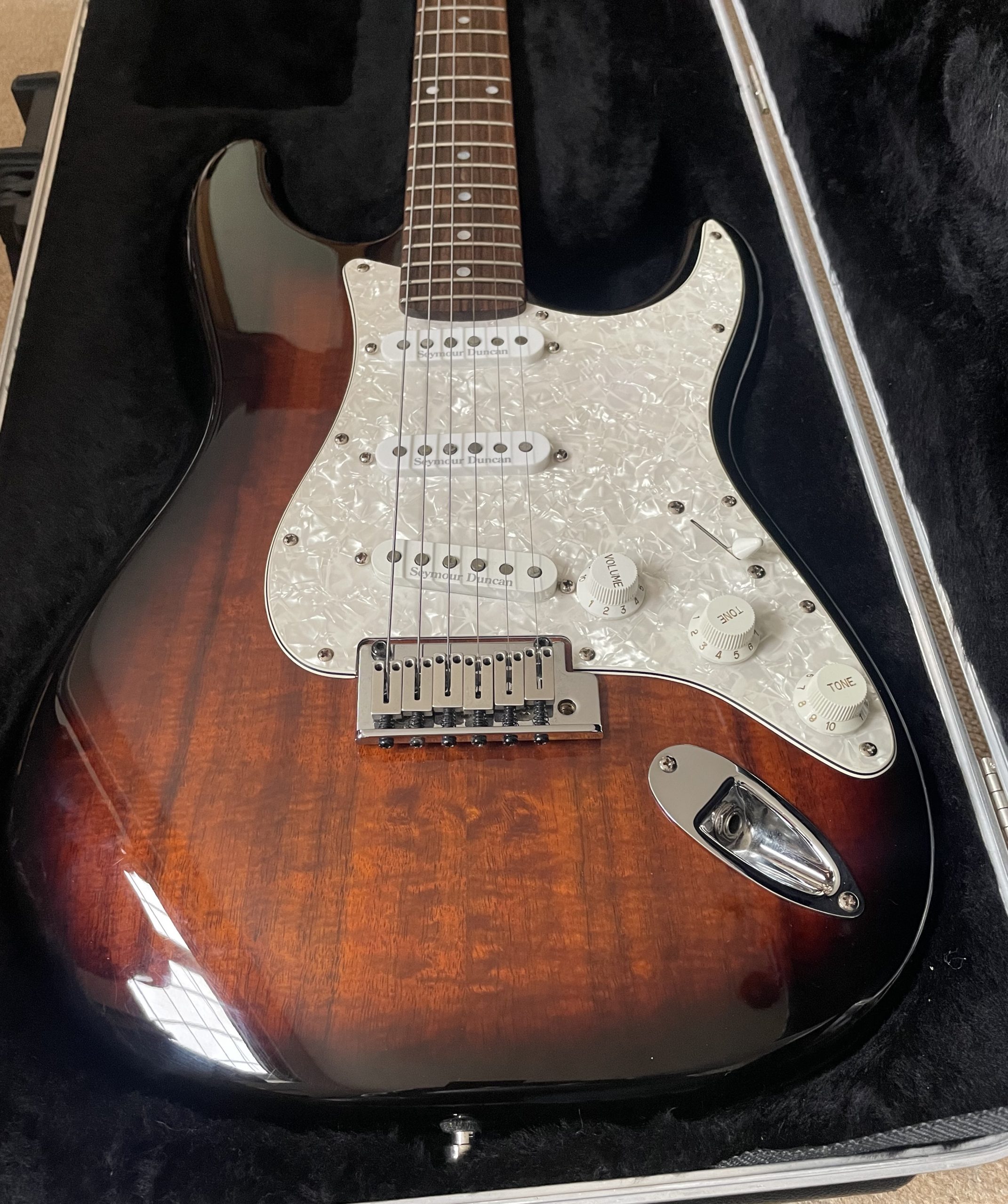Features Special Edition Koa Stratocaster Alder body with koa top Birdseye maple neck Rosewood fingerboard 22 medium-jumbo frets Pearl dot inlays Seymour Duncan Alnico Pro Staggered pickups Satin-finish C-profile neck Pearloid pickguard