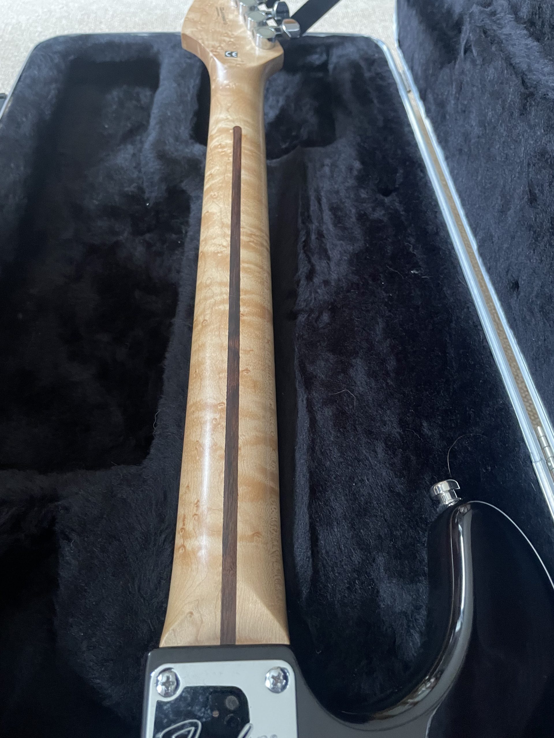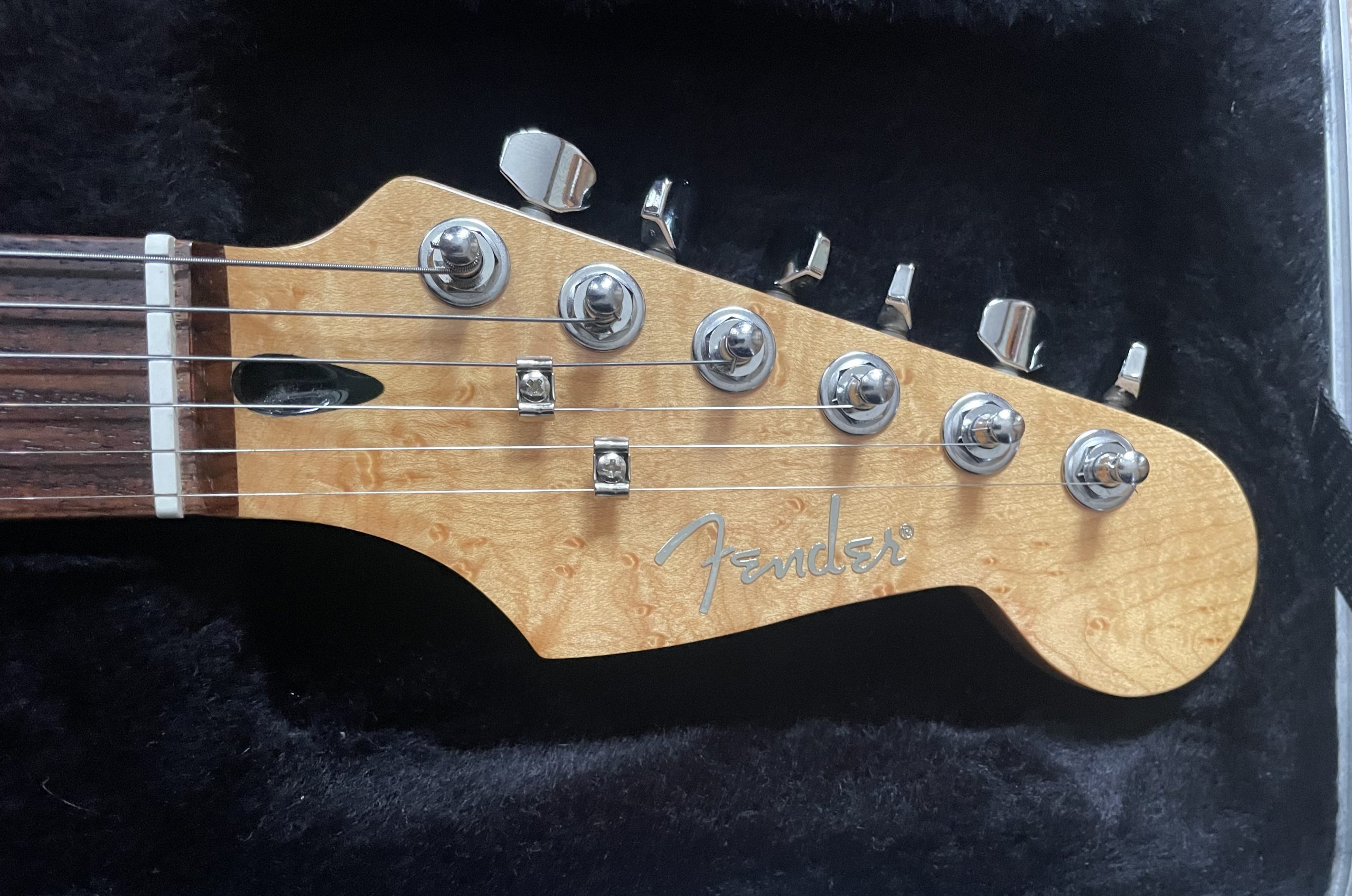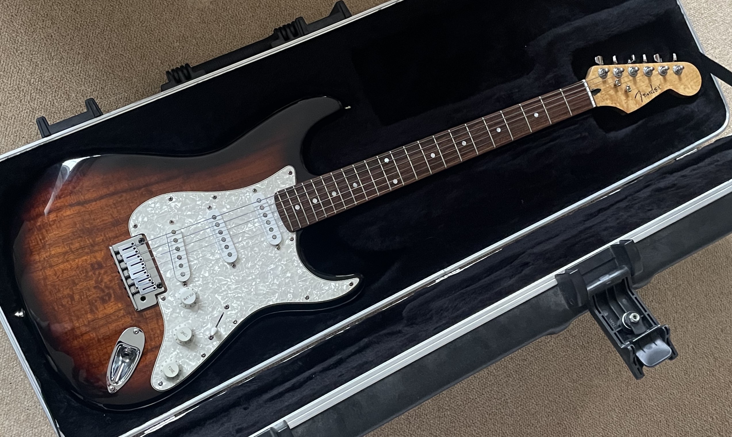 These guitars have been discontinued by fender as they cost to much to make. It’s the only non-custom shop Stratocaster constructed with koa, the traditional Hawaiian tone wood. This exotic-wood beauty features a traditional-shape alder in koa, a satin-finish birdseye maple neck, rosewood fretboard with pearl dot inlays, 22 medium jumbo frets, chrome hardware, traditional 2-point trem, pearloid pickguard, and Seymour Duncan Alnico Pro staggered single-coils.