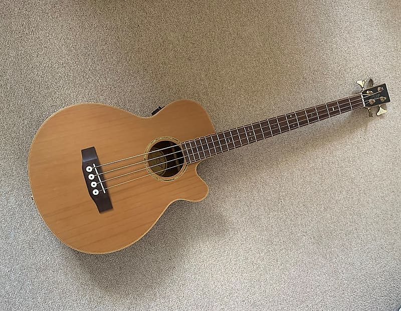 Hudson HfB-14 electro-acoustic bass guitar with a natural