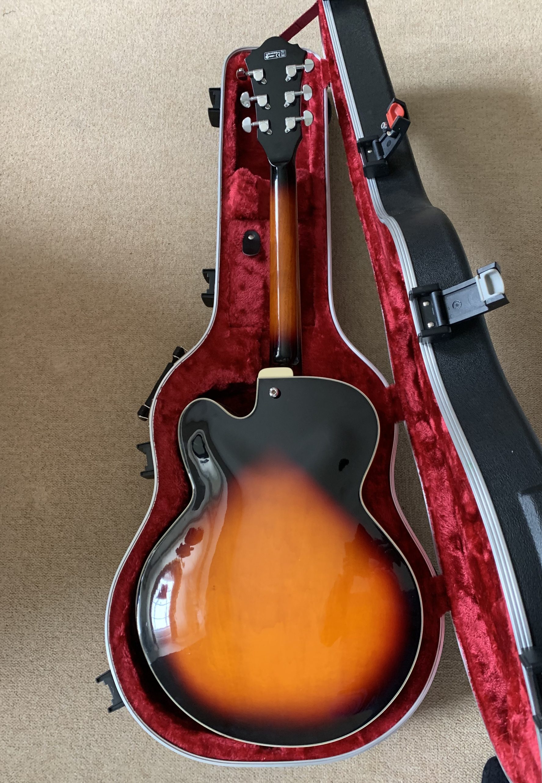 The Ibanez AF75 is one of their most traditional jazz big boxes. Part of the Ibanez Artcore series, introduced back in 2002, this Hollowbody has a large full body that’s truly full-hollow – unlike other jazz semi-acoustics. This gives you rich, complex tones you can only get from a true, fully-hollow guitar. An Ibanez original design from back in the late ’70s/early ’80s, the sure grip knobs give you precise control and non-slip functionality, plus a nice, Ibanez classic look.