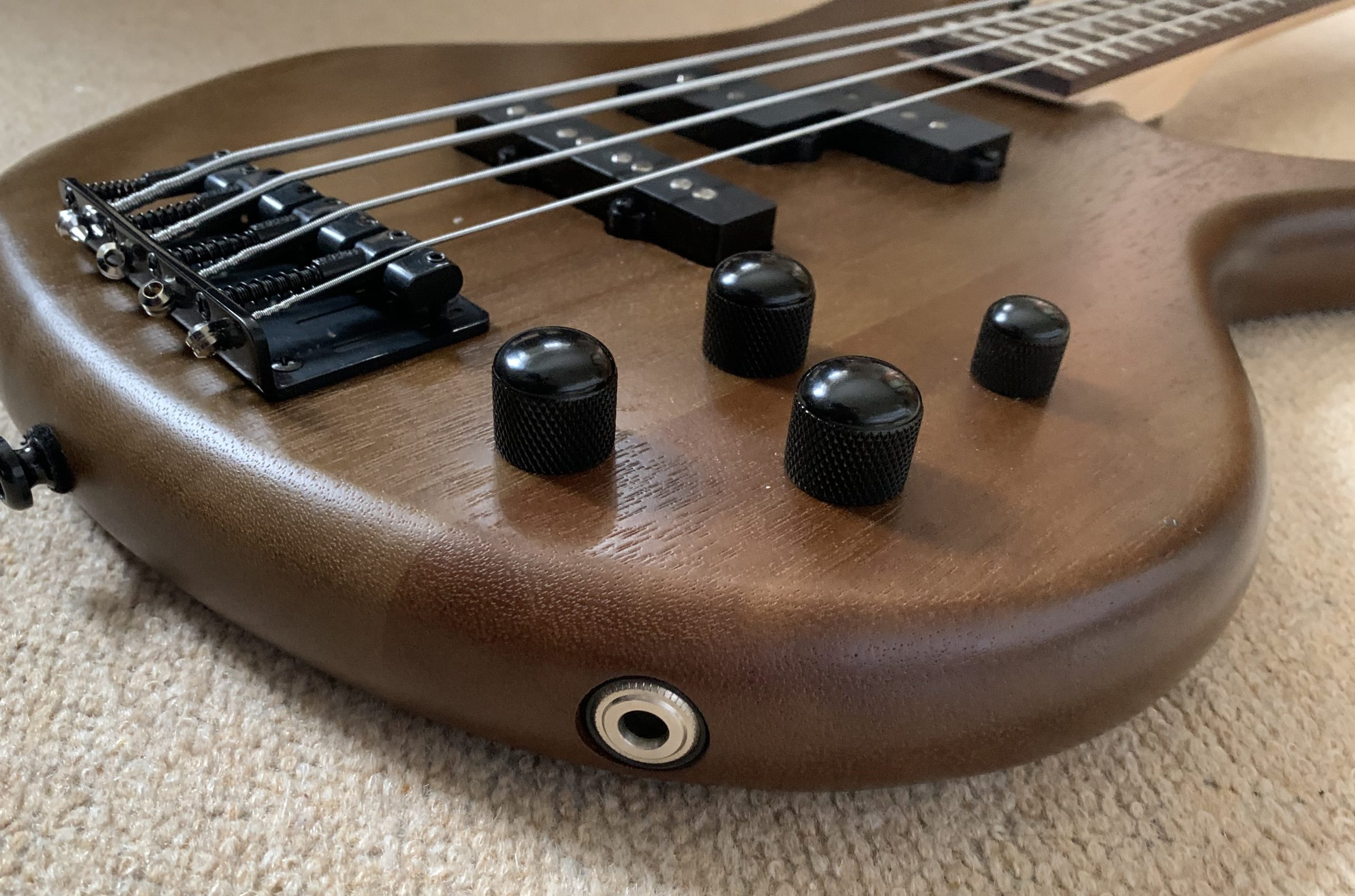 - Controls: Bridge Pickup Volume, Neck Pickup Volume, Tone