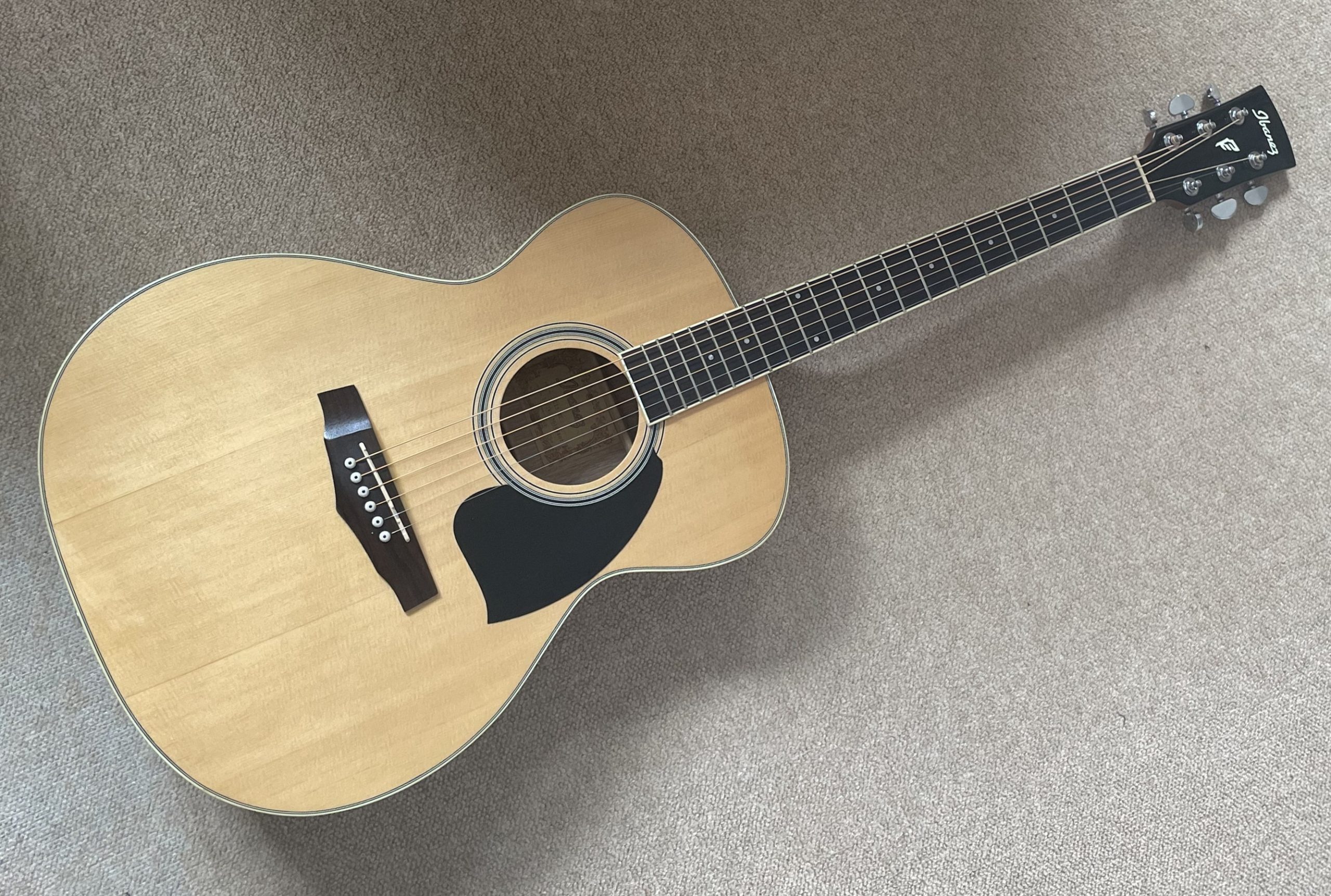 Ibanez Performance acoustic guitars offer you professional features, quality, and sound at an entry-level price. In the case of the 25″ scale PC15NT, it provides you with Ibanez’s popular Grand Concert body with a spruce top, and mahogany back, sides, and neck with a natural high gloss finish. Other appointments include a rosewood bridge and fingerboard, chrome die-cast tuners, a multi-rosette, black pickguard, and Ibanez Advantage bridge pins.