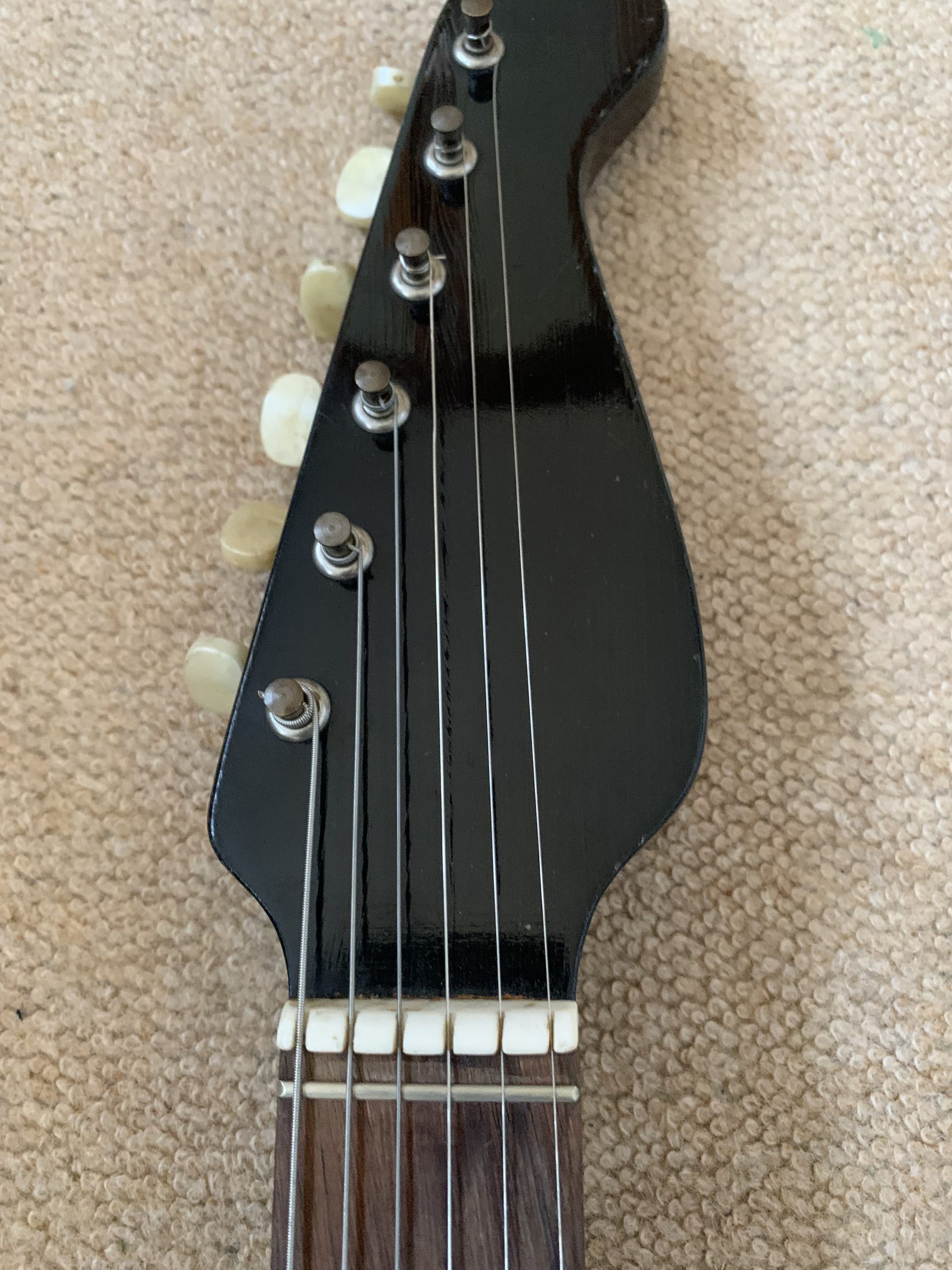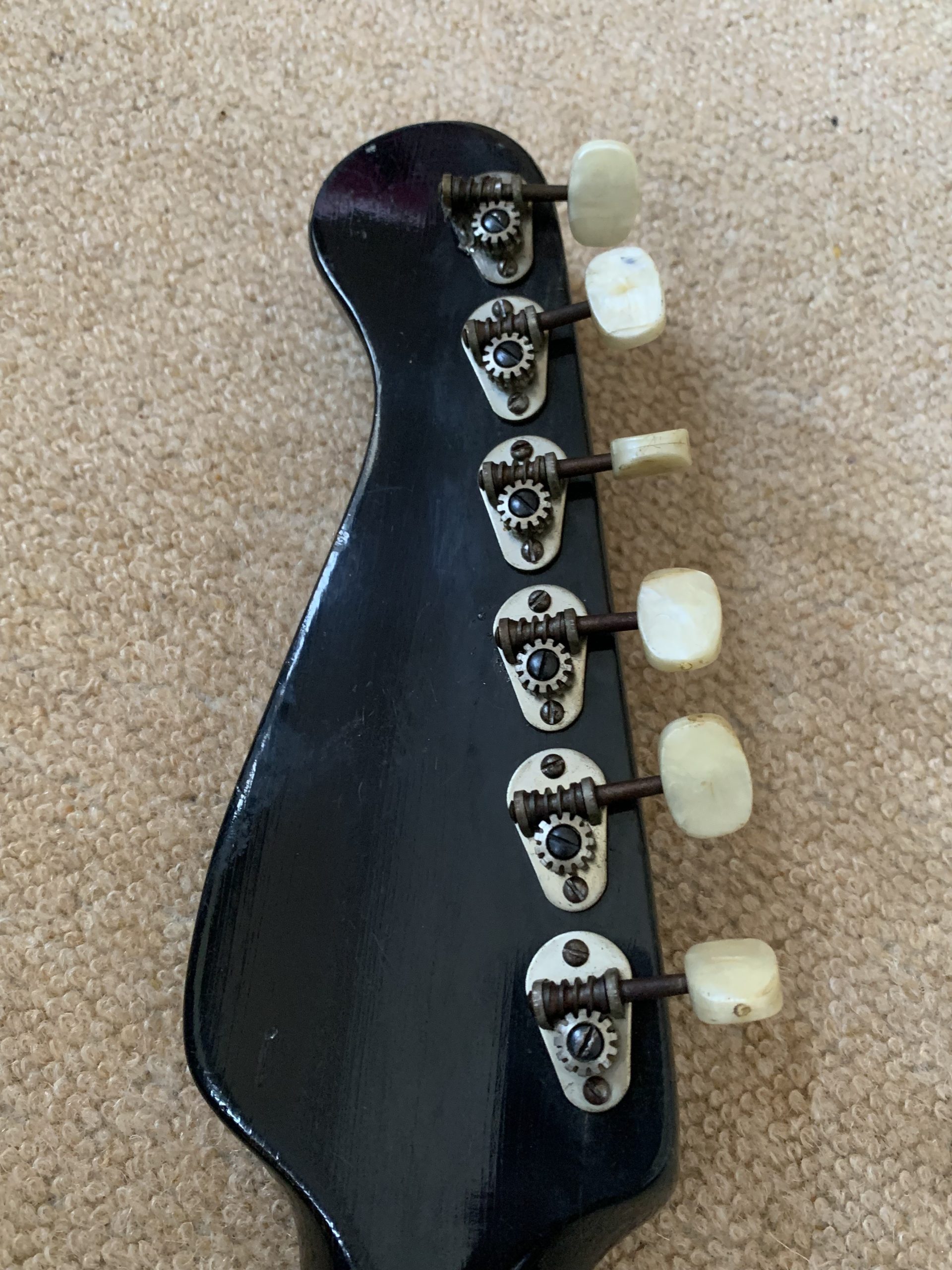 Klira electric guitar 3 Pickup Germany 1960s Gold Fleck In complete/original and working condition Comes with the hard case-graffitied in the punk era Made in Germany Comes with the whammy bar, All original tuners Electrics have just been serviced and everything works. The neck is straight, the action is low,…Read More