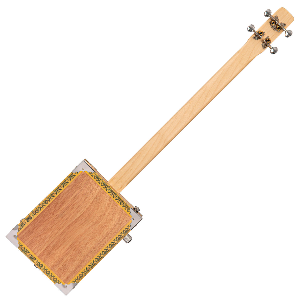 Visually stunning with custom artwork, the Lace Cigar Box Guitar which is made in Southern California has a fresh sound, designed for ease of playability, delivering Rock, Alternative, Country, Blues or Jazz music on both the three or four string boxes.
