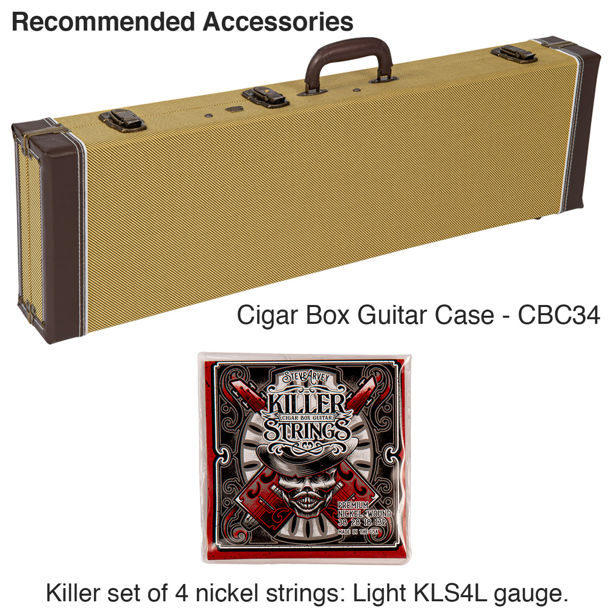 Fitted as standard on all 3 and 4 string models the Matchbook™ pickup, made in the USA, is the first patented pickup designed specifically for the Cigar Box Guitar using Lace’s™ Alumitone® “Current Driven” design. The Matchbook™ is designed to resemble an actual Matchbook with the one magnet featured as the “striker”. This innovative pickup operates with a zero noise-floor with double coil power and single coil clarity via a push-pull volume pot and offers a mean or clean tone.
