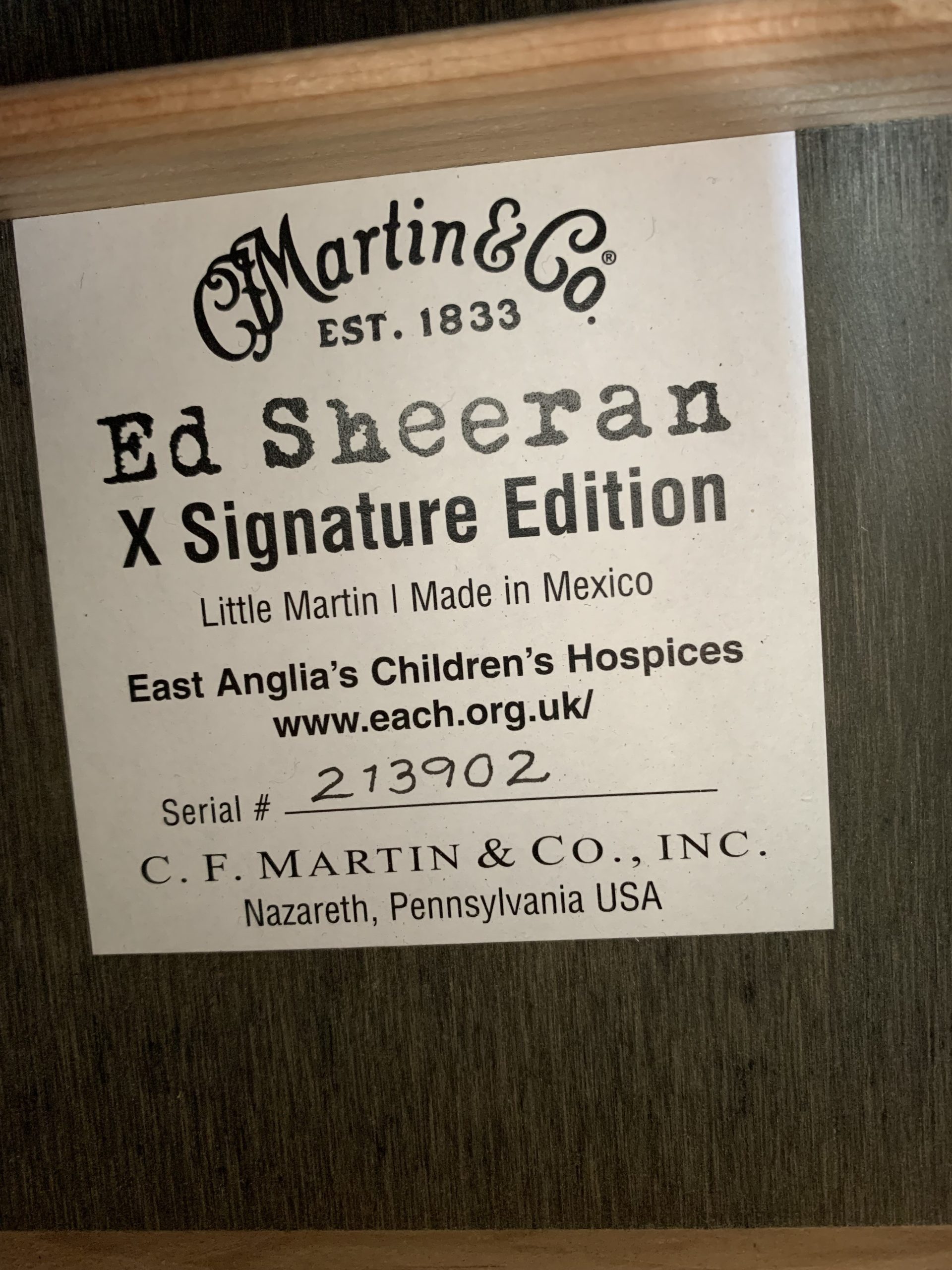 From breaking charts to young girl’s hearts, multi-platinum singer/songwriter Ed Sheeran has become a Martin Ambassador with his second Signature Edition guitar. Designed in collaboration with the team at Martin Guitar, this edition features Ed’s Signature “X” (multiply) sign on the headstock and down the fretboard. This solid spruce topped “Little Martin” LX1E-ES2 comes stage-ready equipped with Fishman Isys T electronics to amplify the direct, punchy tone further accented by a crisp snap, strong midrange, and sparkling high end not usually found in a guitar this size. As Ed has demonstrated many times; the Martin LX1E acoustic electric is as much at home on stage as it is on the couch or trail. He will be donating 100% of his royalties from the sale of every model to the East Anglia’s Children’s Hospices.