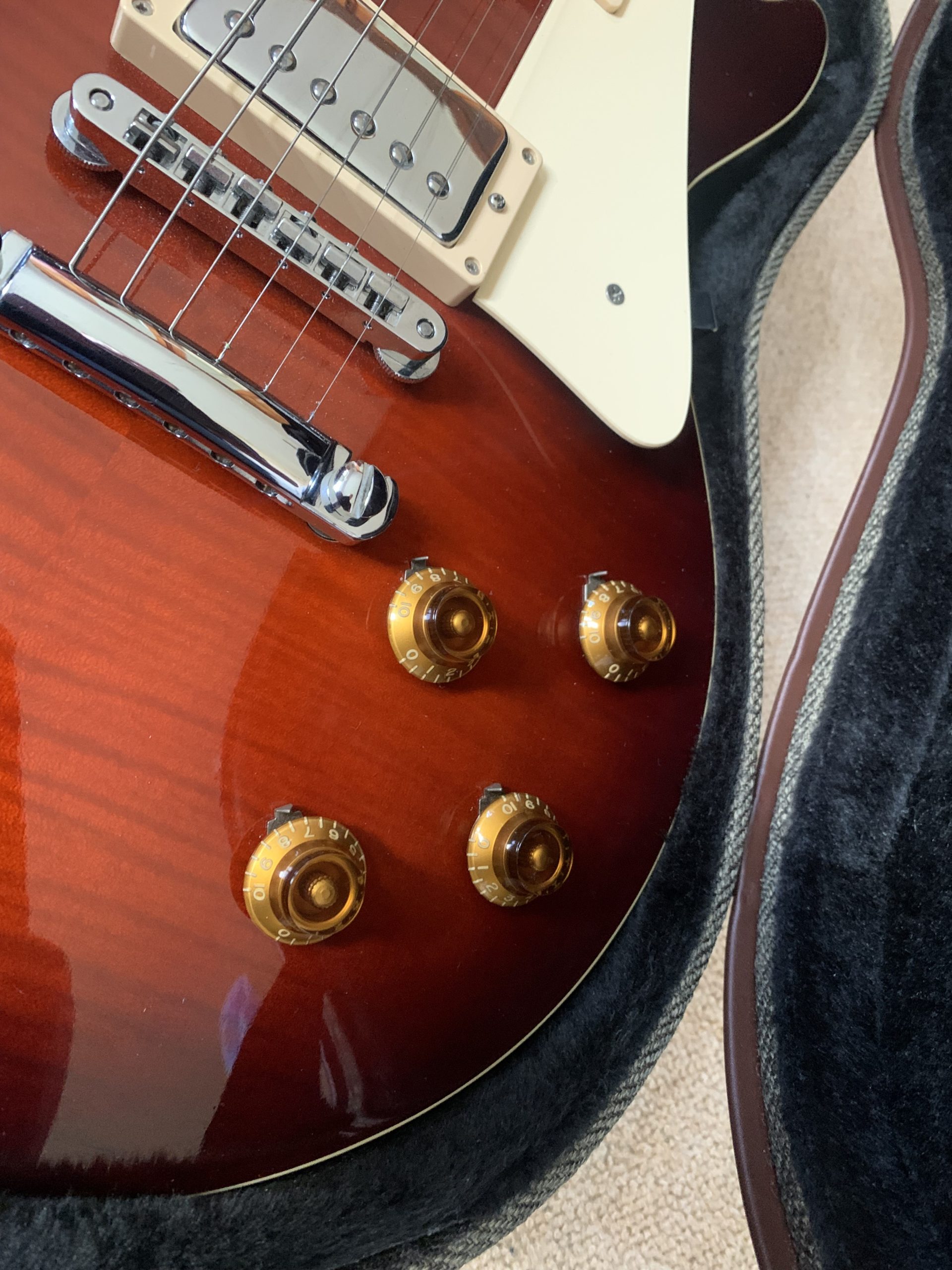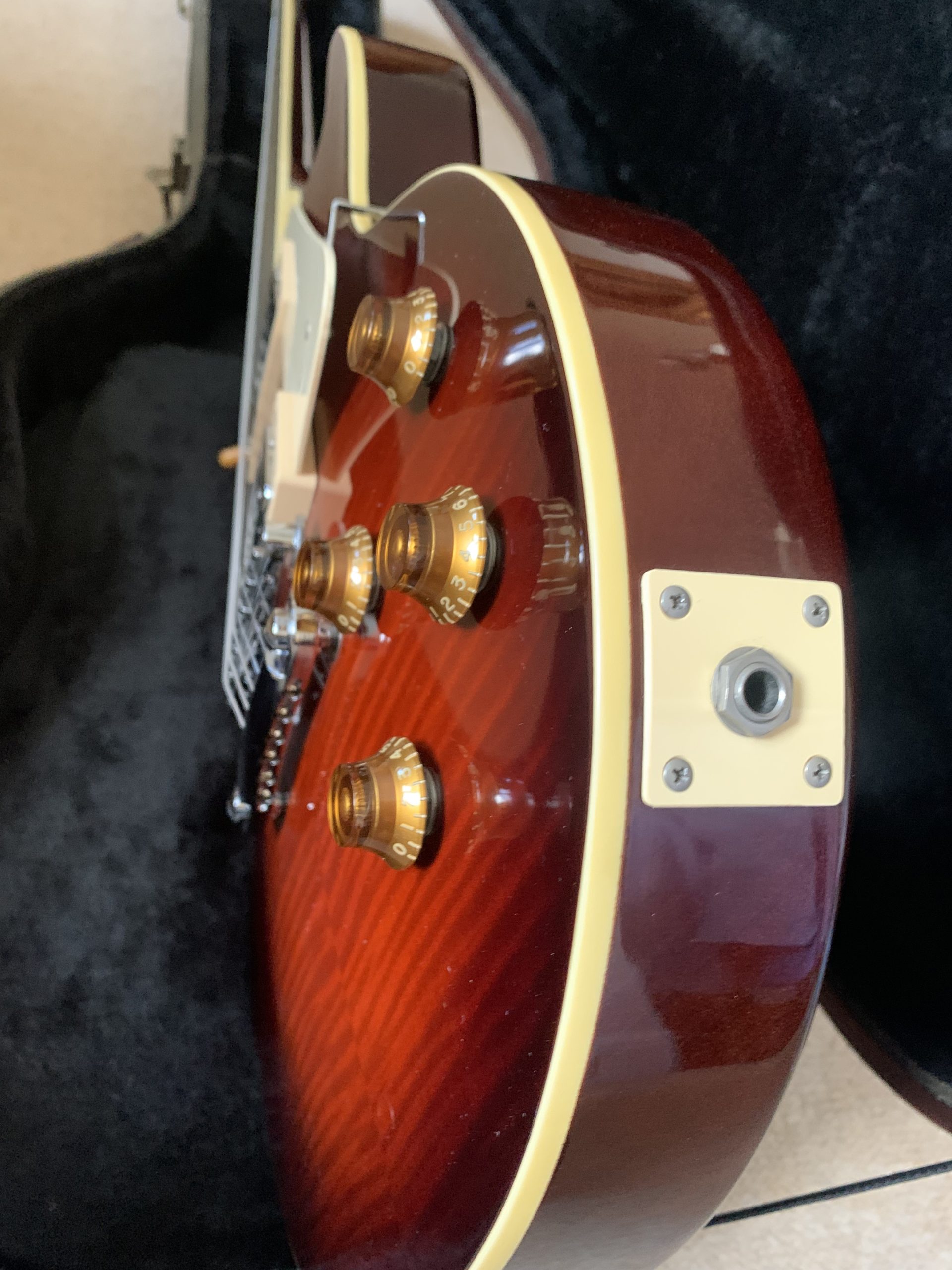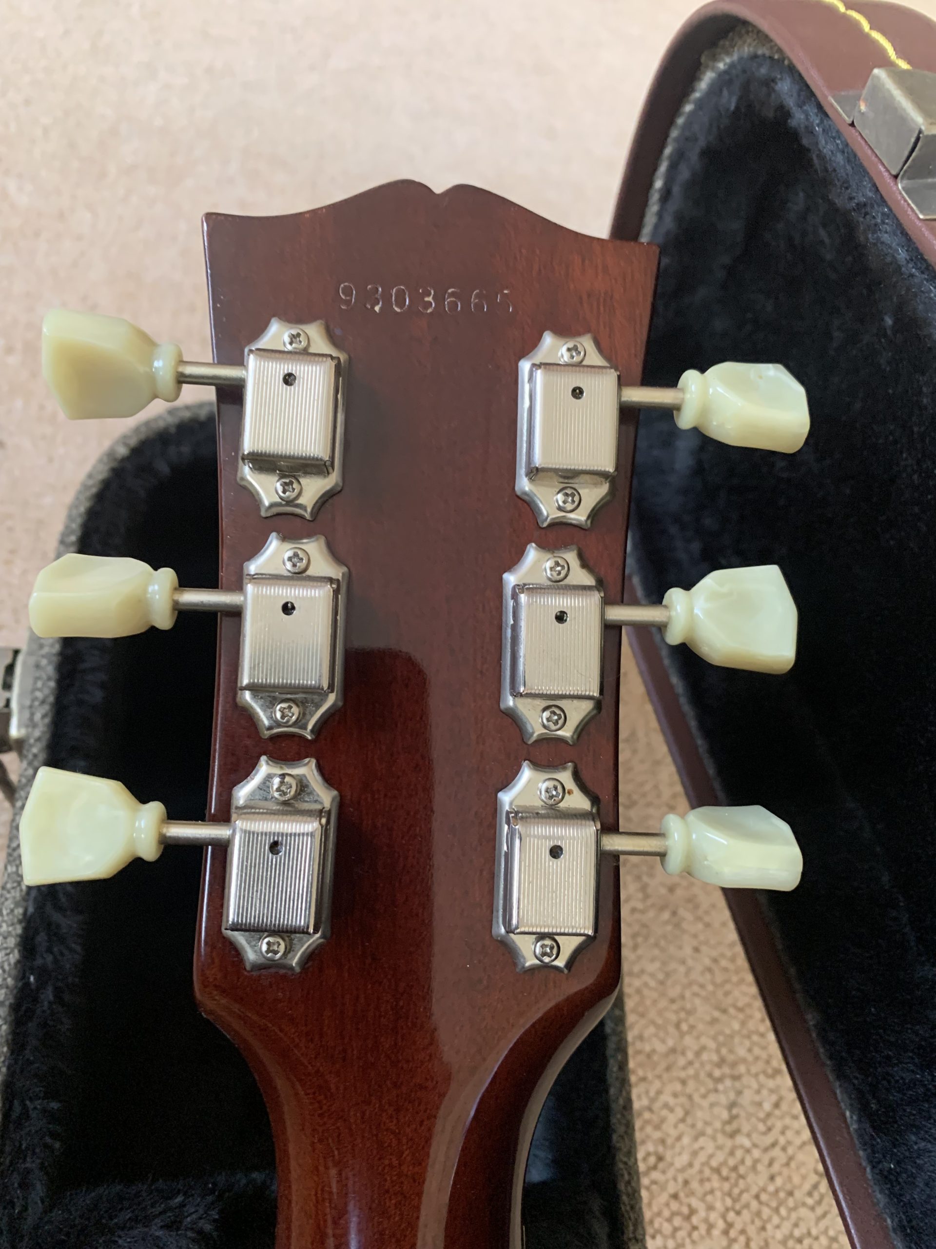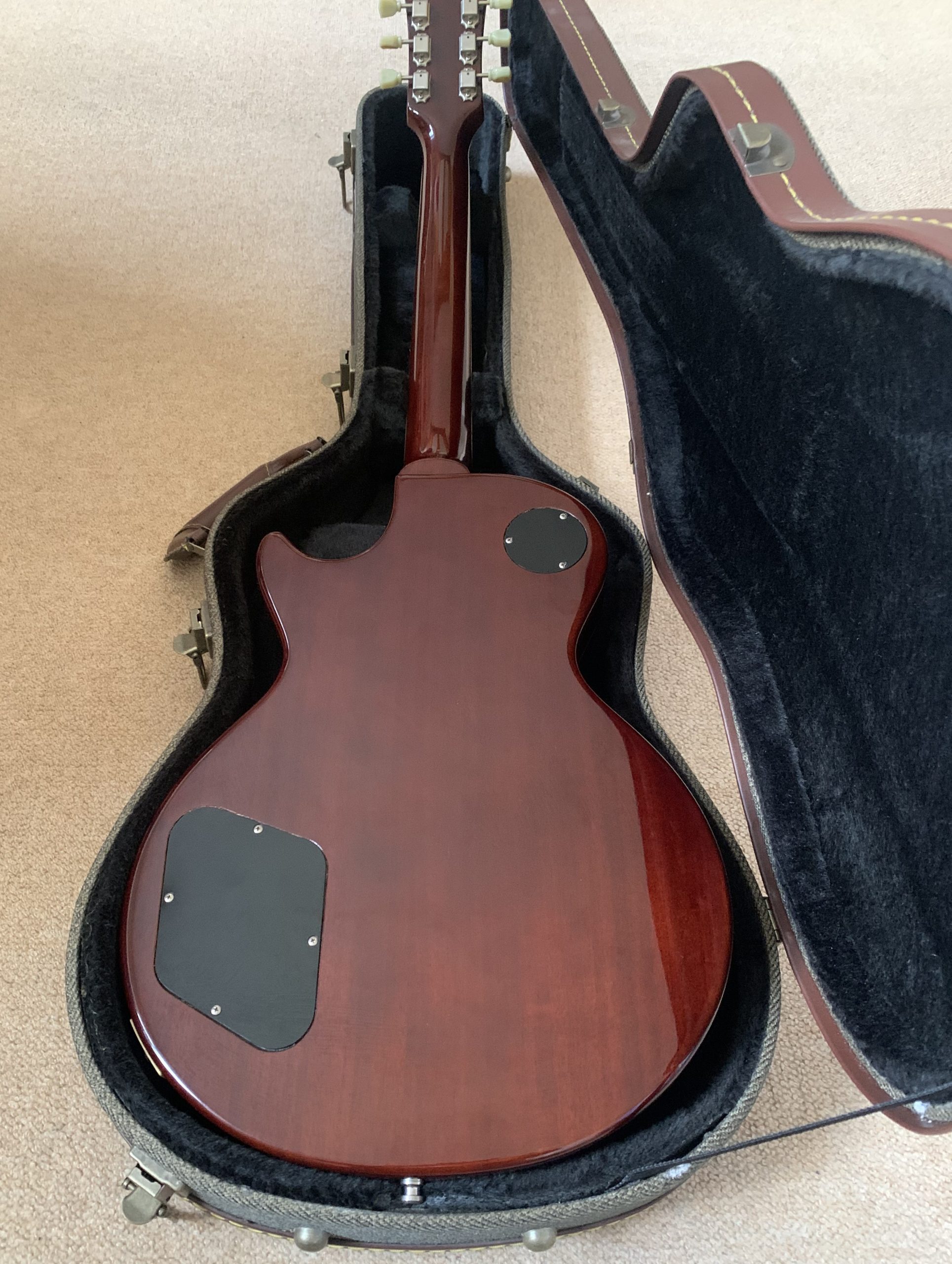 A beautiful red burst maple top, 3 piece mahogany back, one piece mahogany neck with a 60s profile with a long tenon, dark rosewood fingerboard.