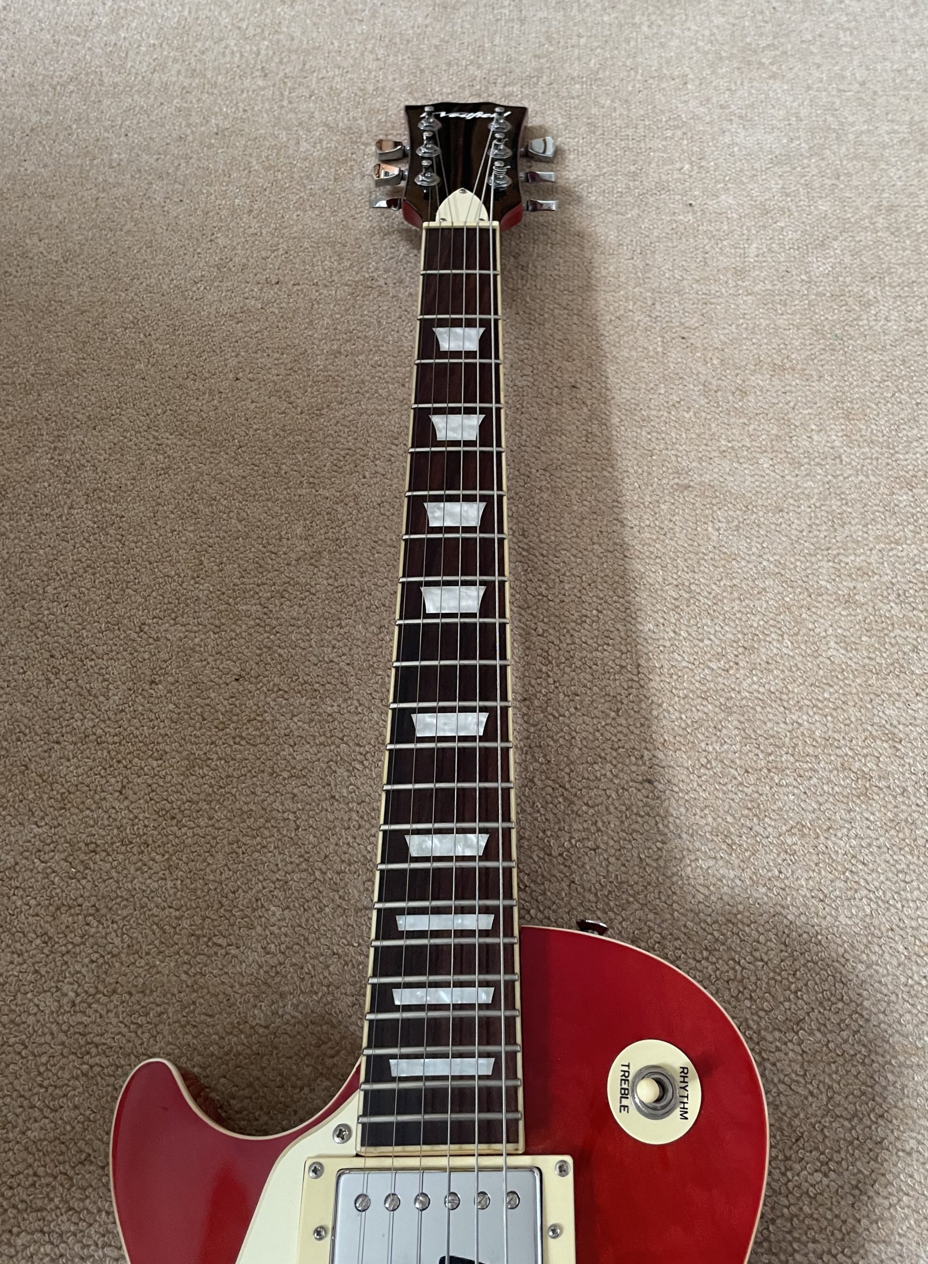 The Les Paul Westfield Left Handed Cherry Sunburst Electric Guitar is a high-quality recreation of a classic electric guitar. Featuring a solid body made from mahogany, a maple neck, and a rosewood fretboard, this guitar delivers rich tones and excellent playability. With a beautiful cherry sunburst finish, 22 frets, and a 6-string configuration, this Westfield guitar is perfect for any left-handed player looking for a versatile and stylish instrument for their musical adventures.